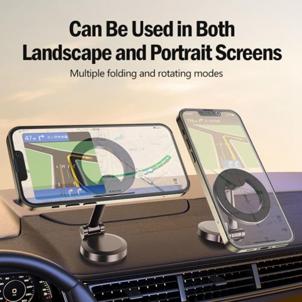 Magsafe Car Mount | 360°Rotation | Magnetic Phone Holder for Car Dashboard | Strong N52 Magnets | Universal Car Mobile Holder Compatible with iPhone, Android | 2 Metal Rings (F122 Silver)